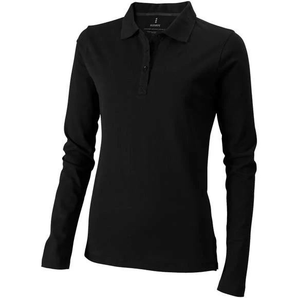 Polo manches longues pour femmes. Col côte en tricot plat. Points verticaux. Patte de boutonnage 3 boutons. Bande de propreté en satin. Fentes latérales avec un ruban satiné. Transmission d’épaule avec couture chaine. Boutons gravés assortis. Étiquette principale en transfert pour un meilleur confort. Maille piquée 100% coton. Grammage : 200g/m²