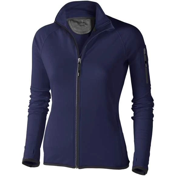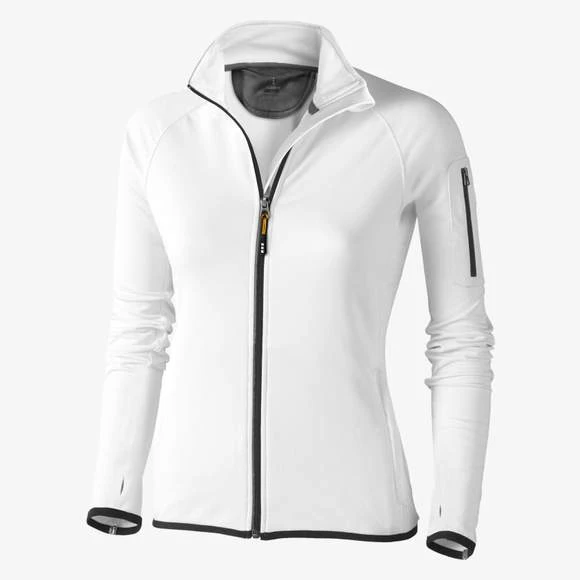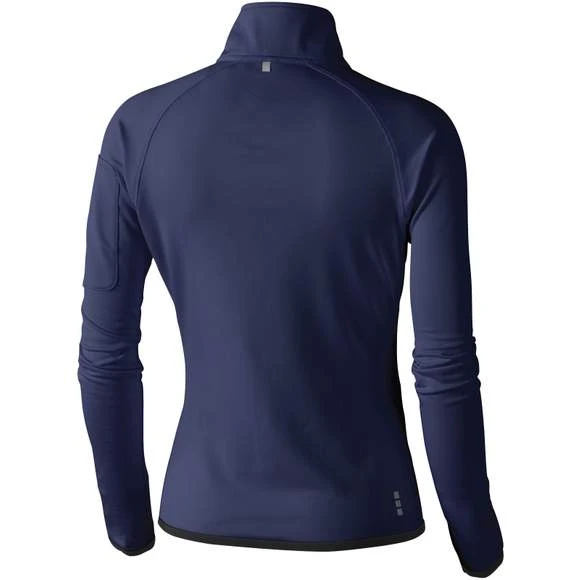 Veste polaire full zip femme. Tissu extensible 4 sens. Trous pour les pouces. Détails réfléchissants. Rabat-tempête intérieur avec protège-menton. Poche intérieure média. Serrage élastique. Poches avant avec fermeture. Poche sur la manche avec zipper. Demi-lune couleur contrastée. Bande de propreté en satin. Demi-lune couleur contrastée. Tricot jersey 91% polyester et 9% élasthanne avec finition respirante Cool Fit. Intérieur brossé. Grammage : 245g/m²