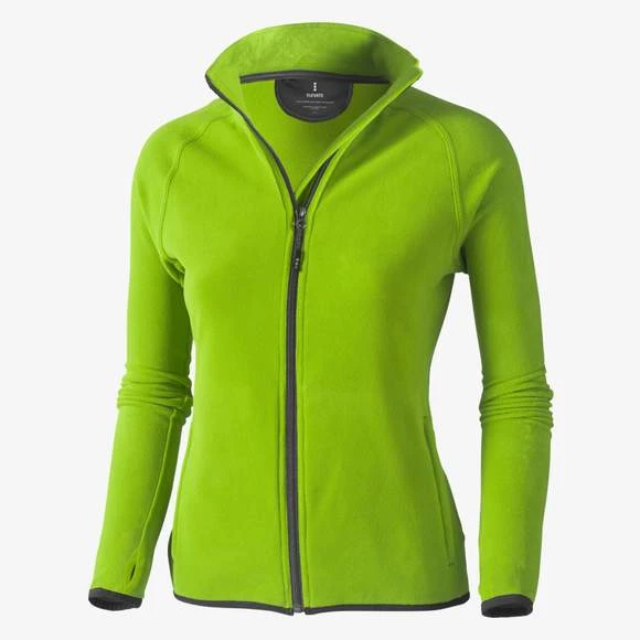 Veste micro-polaire full zip femme. Fermeture avant centrale. Poches pour les mains avec zippers. Serrage élastique. Trous pour les pouces. Manches raglan. Bande de propreté en satin. Rabat-tempête intérieur avec protège-menton. Coutures formées et taille élastique pour ajustement flatteur. Renforts de couleur contrastée à la poche. Étiquette principale en transfert pour un meilleur confort. Micro polaire, 100% Polyester, 2 faces brossées, 1 face anti-boulochage. Grammage : 190g/m²