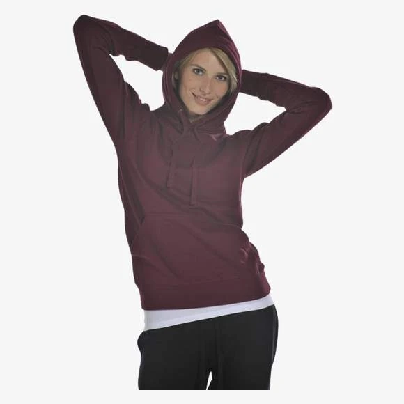 ·300 g/m2 ·80% coton, 20% polyester ·Coupe cintrée féminine ·Capuche doublée de la même matière ·Cordons de même couleur ·Manches raglan ·Poches kangourou à l avant ·Double piqûre ·Ceinture et poignets en lycra côtelé Grammage : 300g/m²