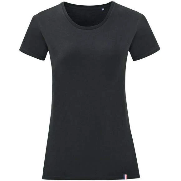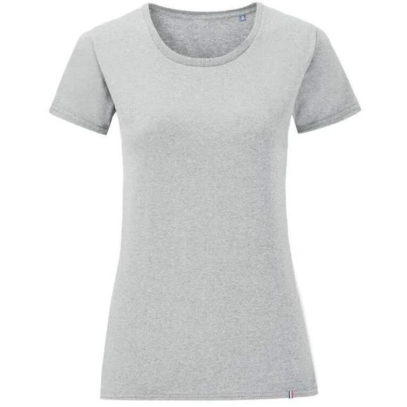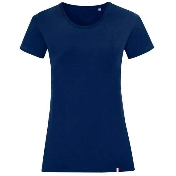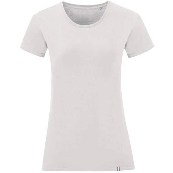 Tee-shirt bio, origine France pour femme. Coupe cintrĂ©e. Col rond. Pas d’Ă©tiquette de marque, seulement une puce de taille au col. Composition cousue dans la couture intĂ©rieure latĂ©rale gauche. Coton peignĂ© de belle qualitĂ©. Bande de propretĂ© au col. Double surpiqure bas et manches. Drapeau tricolore sur la manche. Origine France garantie. Composition : 100% coton peignĂ© jersey organique. Grammage : 190g/m²