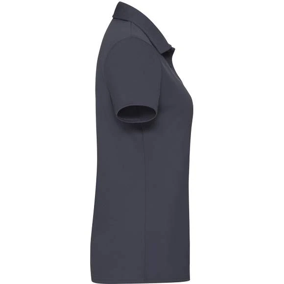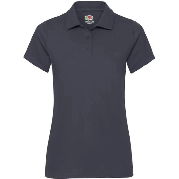 100% Polyester. Evacuation de l humidité et séchage rapide. Bande de propreté dans le cou dans le même matériau. Patte de boutonnage avec des 3 boutons, ton sur ton. Manches set-in. Etiquette imprimée dans le col pour plus de confort. Coutures latérales. Coupe féminine. Grammage : 140g/m²