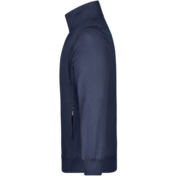 Veste en polaire indéformable en coton peigné ringspun de qualité 3 fils avec poches latérales à fermeture zippée. Éléments de la couture à double aiguille. Poignets avec élasthanne et doublure polaire brossée. Composition : 80% coton, 20% polyester. Grammage : 300g/m²