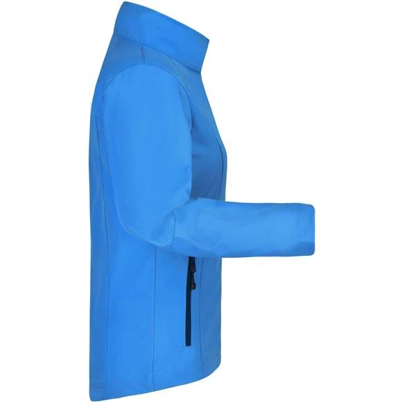 Veste softshell tendance pour femme, coupe-vent et étanche à l’eau, à 3 couches avec membrane en TPU (colonne d’eau de 2.000 mm), coutures non scellées. Respirant (2.000 g/m²/24h), à tissu extensible souple et sportif. Possède 2 poches latérales à fermeture zippée, 2 poches intérieures et un cordon élastique avec arrêt à l’ourlet. Composition : 90% polyester, 10% élasthanne. Grammage : 270g/m²