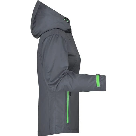 Veste softshell pour femme, légèrement cintrée, ultra légère pour les conditions climatiques extrêmes. En tissu fonctionnel avec membrane technique TPU, coupe-vent et hydrofuge (10.000 mm) avec propriété respirante et perméable à la vapeur d’eau (5000 g/m² /24h). Coutures soudées, zips imperméables. Possède deux poches latérales zippées, une capuche multi-réglable. Coupe ergonomique, plus long dans le dos. Composition : 100% polyester. Grammage : 130g/m²