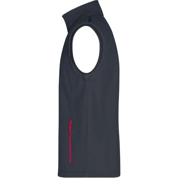 Veste en matière softshell agréable et souple à 2 couches, hydrofuge, coupe-vent, respirante. La face intérieure est en micropolaire souple. La fermeture zippée ourlée en continu sur le devant avec mentonnière. Possède deux poches latérales zippées et deux poches intérieures. Composition : 100% polyester. Grammage : 280g/m²