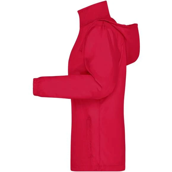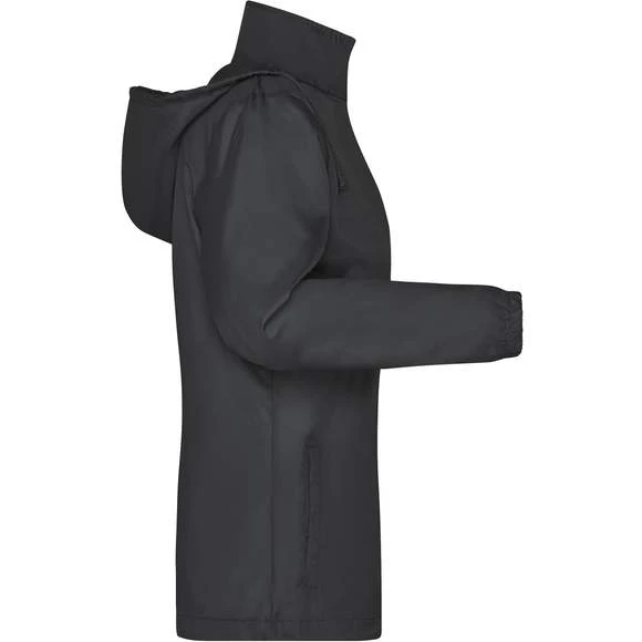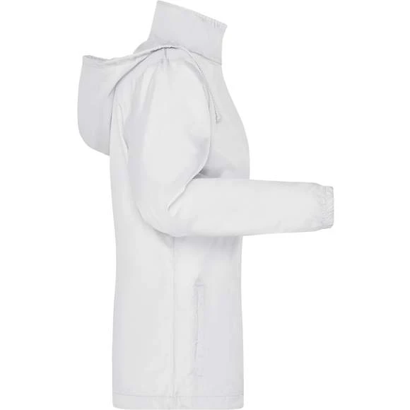 Veste pour femme, à coupe cintrée, en tissu polyester léger à revêtement coupe-vent et hydrofuge (niveau d’eau de 600 mm). Possède un cordon à l’ourlet, deux poches intérieures latérales, une capuche intégrée avec cordon dans le col ainsi qu’un liseré de manche élastique. Rangement pratique dans la poche latérale, port agréable autour de la taille grâce à une bande élastique. Composition : 100% polyester.