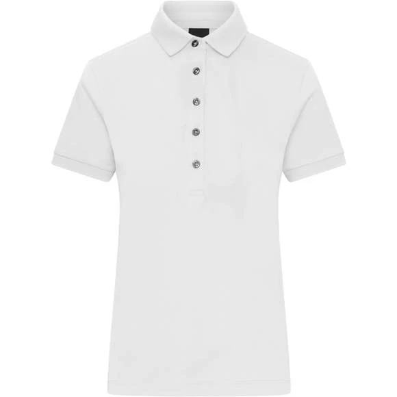 Polo pour femme, légèrement cintré, en jersey simple de haute qualité, en coton mercerisé peigné ring-spun. Col polo en maille. Poignets en maille, fentes latérales. Cinq boutons en titane (pour toutes les couleurs). Composition : 100% coton. Grammage : 180g/m²