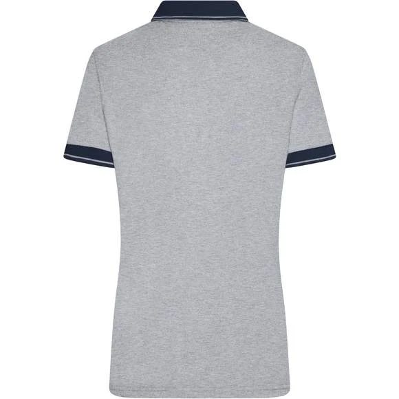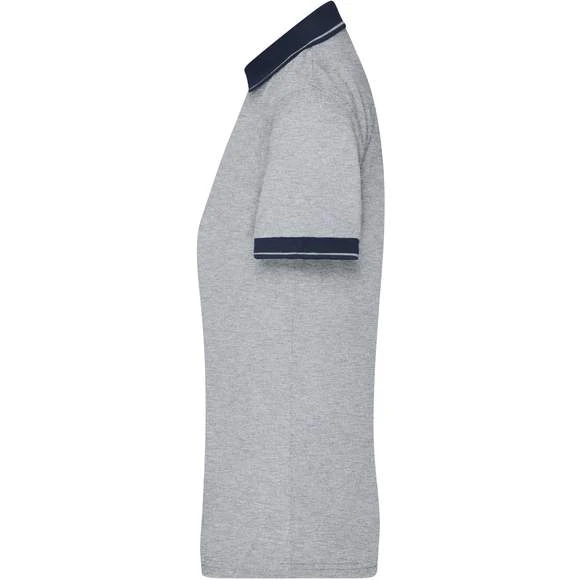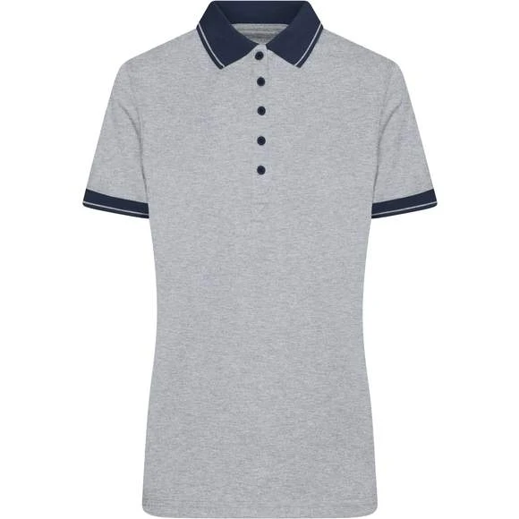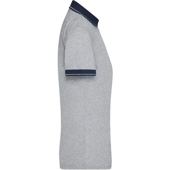 Polo pour femme, légèrement cintré, dans un mélange de matières tendance, en jersey simple fin. Coupe décontractée. Col polo et poignets à rayures contrastées. Possède cinq boutons. Composition : 65% polyester, 35% coton. Grammage : 170g/m²