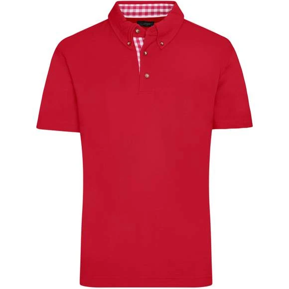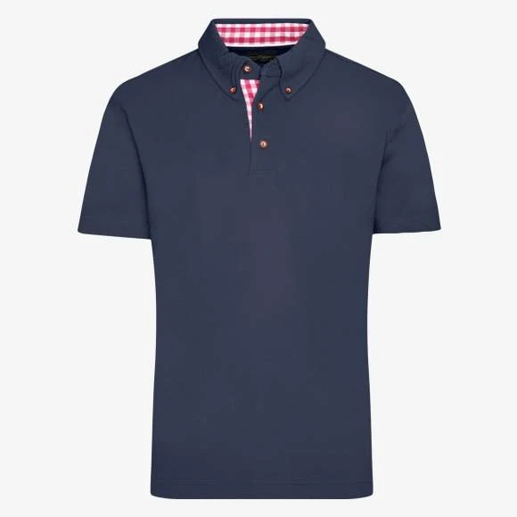 Polo classique pour homme, au look traditionnel. Piqué de qualité fine. En coton peigné ringspun. Le col a un motif à carreaux à l’intérieur comme la patte de boutonnage. Il possède des fentes latérales et des boutons en imitation de corne, une demi-lune ton sur ton, un col button-down et trois boutons. Composition : 100% coton. Grammage : 195g/m²