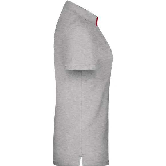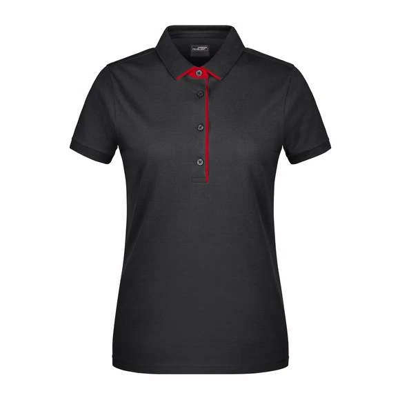 Polo classique pour femme, à coupe cintrée, avec éléments contrastés. Piqué de haute qualité. En coton peigné ringspun. Le col du polo et les poignets sont en tricot, il possède des rayures contrastées au col. L’intérieur de la barre de col et de la languette de bouton est de couleur contrastante. Les boutons sont ton-sur-ton. Il possède des fentes latérales et quatre boutons. Composition : 100% coton. Grammage : 240g/m²