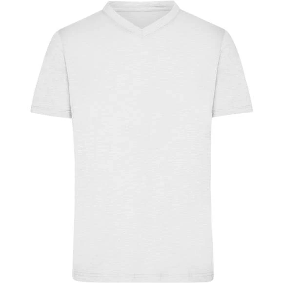 T-shirt fonctionnel pour homme, pour le loisir et le sport. En jersey simple élastique flammé. Respirant, évacuant l’humidité et à séchage rapide. Possède une bande de propreté, un col en V. Composition : 95% polyamide, 5% élasthanne. Grammage : 180g/m²