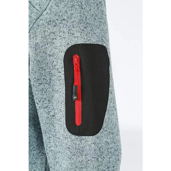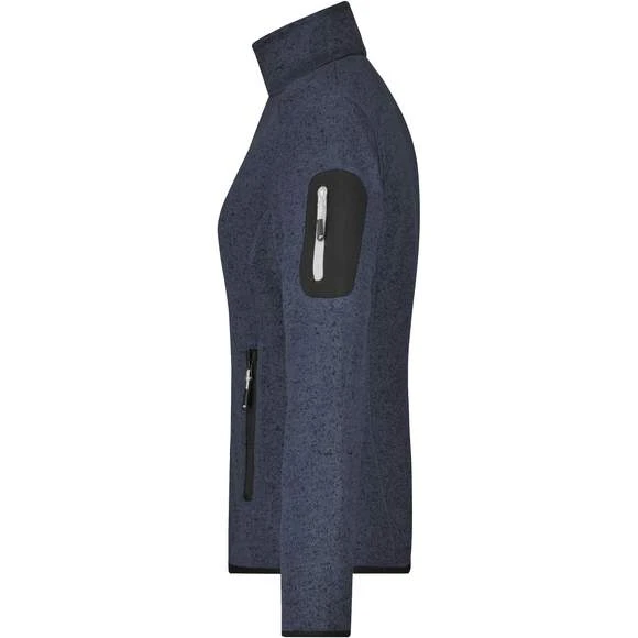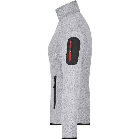 Veste polaire tendance pour femme, avec col montant. En tissu doux, chaud et facile d’entretien, d’aspect chiné. Extérieur d’aspect tricoté, intérieur d’aspect rugueux – doux et moelleux. Possède des coutures de séparation épousant la silhouette, des poches latérales zippées une bordure contrastante sur l’ourlet et les manches ainsi qu’une poche zippée sur la manche. Composition : 100% polyester. Grammage : 280g/m²