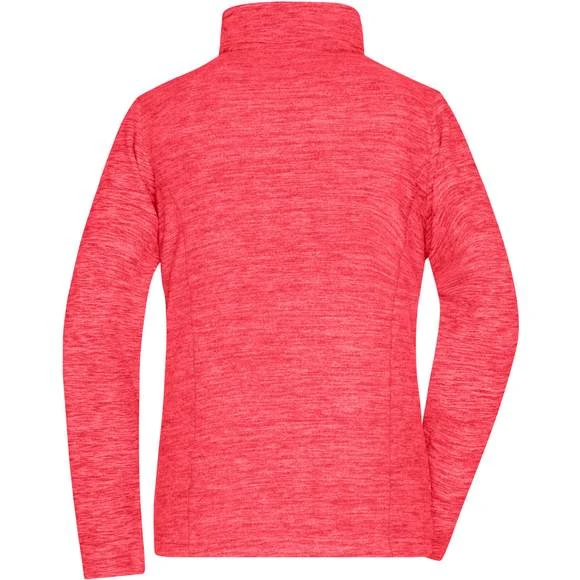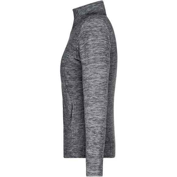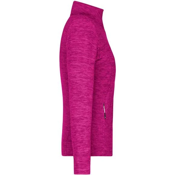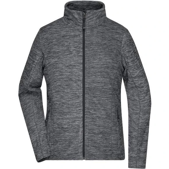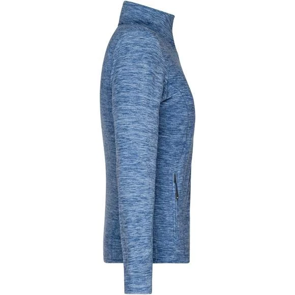 Veste polaire pour femme, à coupe cintrée, avec effet de mélange tendance en micro-polaire anti-bouloches facile à entretenir aux coutures de séparation épousant la silhouette. Possède un col montant et deux poches latérales zippées. Composition : 100% polyester. Grammage : 200g/m²