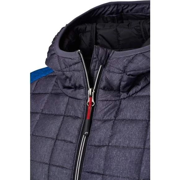 Veste pour femme, à coupe cintrée, en tissu doux, chaud et facile d’entretien, d’aspect chiné. L’avant, l’arrière et la capuche sont en motif à carreaux matelassés, les coutures sont plates et contrastées sur les manches. La largeur intérieure de la capuche est réglable. Possède une fermeture zippée couverte sur toute la longueur, deux poches latérales avec fermeture zippée et deux poches intérieures. Composition : 100% polyester; doublure: 100% polyamide. Grammage : 280g/m²