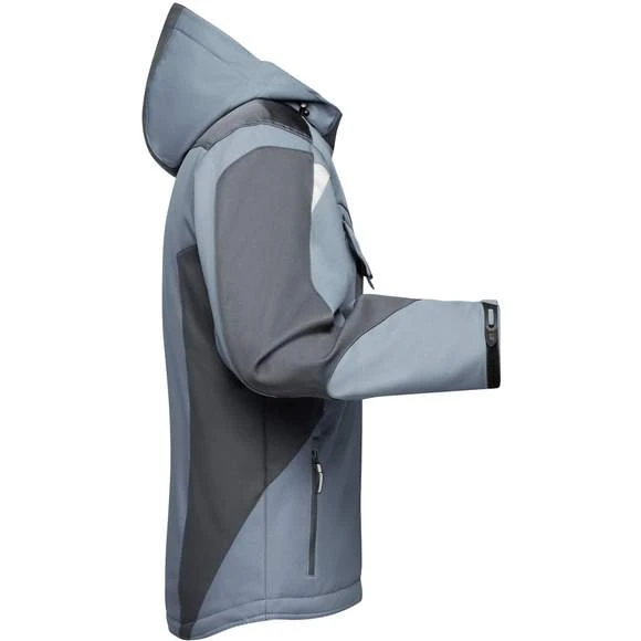 Veste softshell professionnelle pour homme, avec doublure intérieure chaude. En matériau softshell robuste et durable, coupe-vent et hydrofuge (colonne d’eau de 2 000 mm), à propriété respirante et perméable à la vapeur d’eau (2000 g/m² /24h). Possède un col montant avec intérieur en polaire douce, une capuche ajustable et amovible. La zone des épaules est renforcée par CORDURA®. Fermeture zippée couverte sur toute la longueur avec protection contre le vent. Poignets chauffants intérieurs. Possède de nombreuses poches : latérales, poche poitrine et poche intérieure avec fermeture zippée, poche poitrine à rabat, poche intérieure pour téléphone portable. Éléments réfléchissants (sans fonction de protection / pas d’EPI) sur le bras et au dos. Zip pour la décoration au dos. Composition : 100% polyester; bord 100% polyamide.