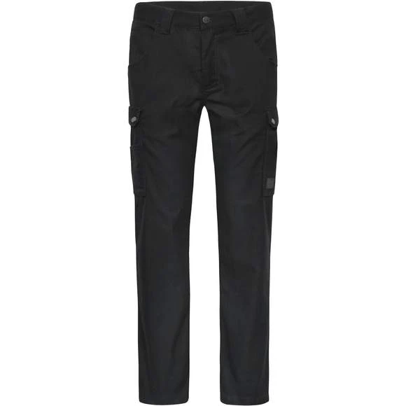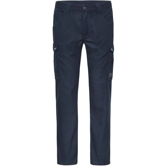 Pantalon cargo pour le travail et les loisirs en tissu mélangé robuste, durable et confortable avec finition BIONIC FINISH®ECO, à coupe cintrée. Triple couture résistante à la déchirure. Possède des boucles de ceinture ainsi que de nombreuses poches : deux poches latérales et deux poches arrière ; deux poches cargo avec poche mètre ; une poche pour téléphone portable ainsi qu’une poche pour stylo. Composition : 64% polyester, 33% coton, 3% élasthanne. Grammage : 280g/m²