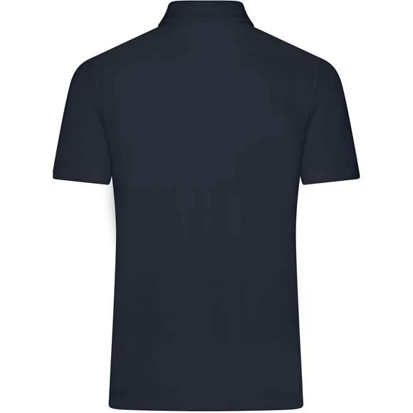 Polo homme avec inserts contrastés à piqué fin classique, en coton peigné ringspun. Col button-down. Motif au col, à l’intérieur de la patte de boutonnage et fentes latérales. 3 boutons de couleur contrastante. Demi-lune ton sur ton. Composition : 100% coton. Grammage : 190g/m²