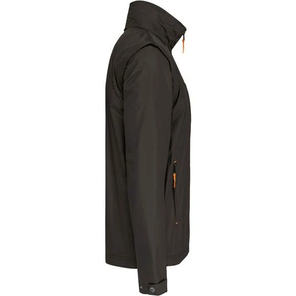 Fermeture zippée. 3 poches zippées. Manches amovibles zippées. Patte de serrage au bas des