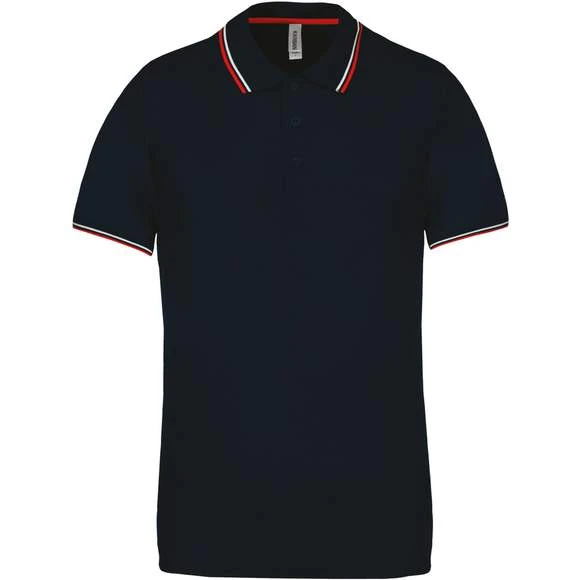 100% coton piqué. Patte de boutonnage 3 boutons. Bande de propreté contrastée encolure et fentes côtés. Finitions bord-côte avec liserés contrastés col et bas de manches. Double aiguille bas de vêtement. Grammage : 220g/m²