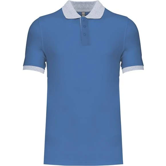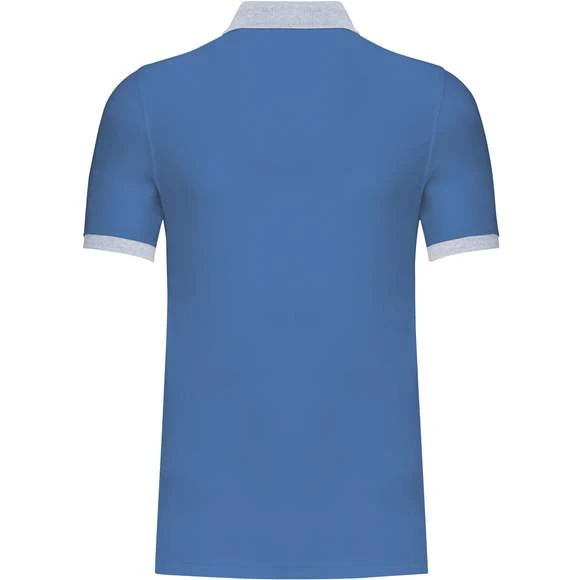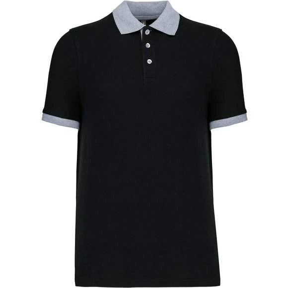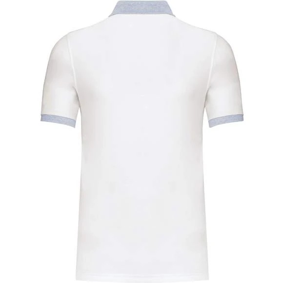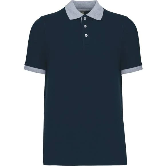 100% coton piqué pré-rétréci (Oxford Grey : 90% coton / 10% viscose). Bord-côte contrasté au col et bas de manches. Bande de propreté encolure contrastée. Patte de boutonnage intérieure contrastée avec 3 boutons. Finition double aiguille au bas de vêtement. Grammage : 180g/m²