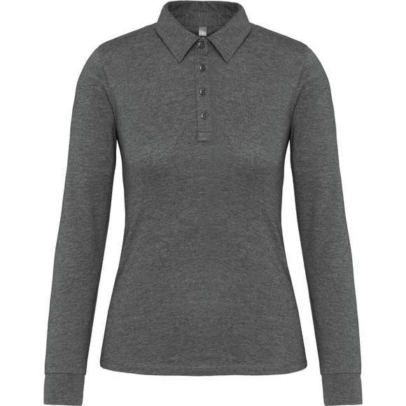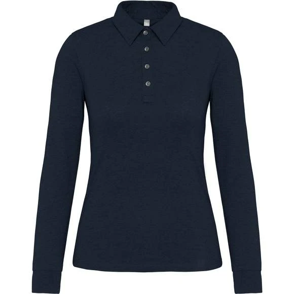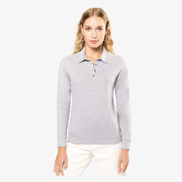 100% coton (Grey Heather : 65% polyester / 35% coton). Maille jersey en coton peigné. Col chemise. Patte de boutonnage 4 boutons métal. Empiècement épaule. Poignet en bord-côte. Double aiguille bas de vêtement. Grammage : 180g/m²
