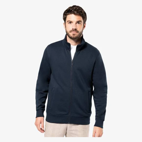 Veste en molleton gratté pour homme. Coupe ajustée. Manches droites. Col montant. Fermeture zippée plastique ton sur ton. 2 poches zippées et passepoilées côté. Finition demi-lune à l’encolure dos pour faciliter la personnalisation de marque à l’intérieur col. Finition bord-côte 1×1 bas de manches et de vêtement. Etiquette de marque Tear Away. Certifié STANDARD 100 by OEKO-TEX® N° CQ 1007/7, IFTH. Traitement LSF (Low Shrinkage Fleece : molleton prérétréci). Molleton gratté 3 fils en coton peigné.Composition : 80% Coton, 20% Polyester. Grammage : 300g/m²