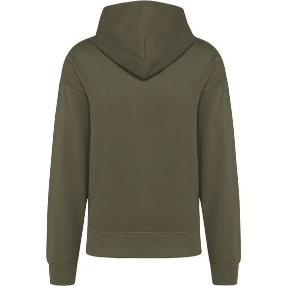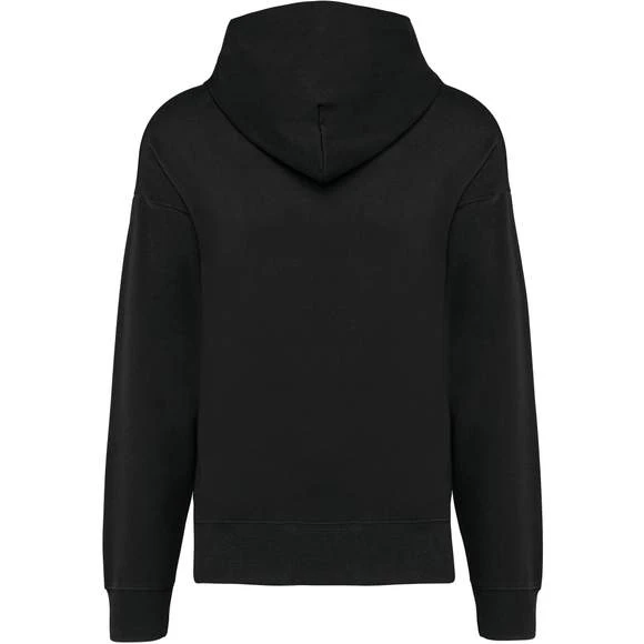 Sweatshirt à capuche molleton oversize unisexe. Coupe oversize avec épaules tombantes. Molleton gratté. Coton cardé. Bord côte 2×1 finition tubulaire pour une meilleure finition au bas de manches et de vêtement. Poche cachée avec zip invisible dans la couture côté droit au porté. Capuche avec pince doublée en coton. Présence d’élasthanne dans le bord côte bas de manche et de vêtement pour éviter que le vêtement se déforme. Bande de propreté en chevron ton sur ton. Demi-lune intérieur col. Finition double surpiqûre à cheval sur bas de manches et de vêtement. Pas d’étiquette de marque au col, uniquement une puce de taille pour faciliter la personnalisation. Composition : 80% coton, 20% polyester. Grammage : 280g/m²
