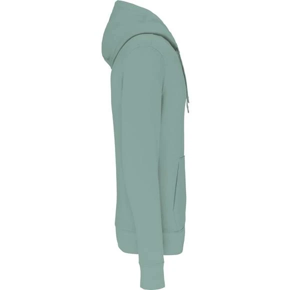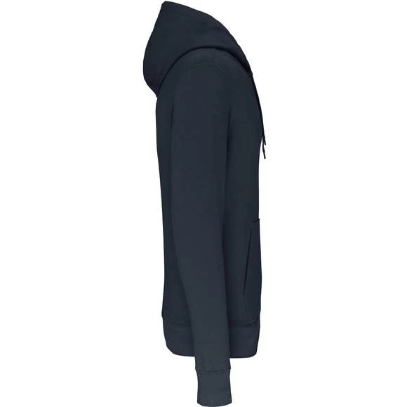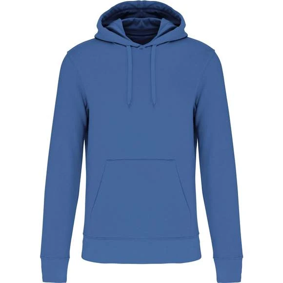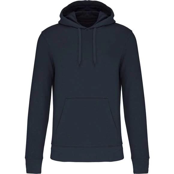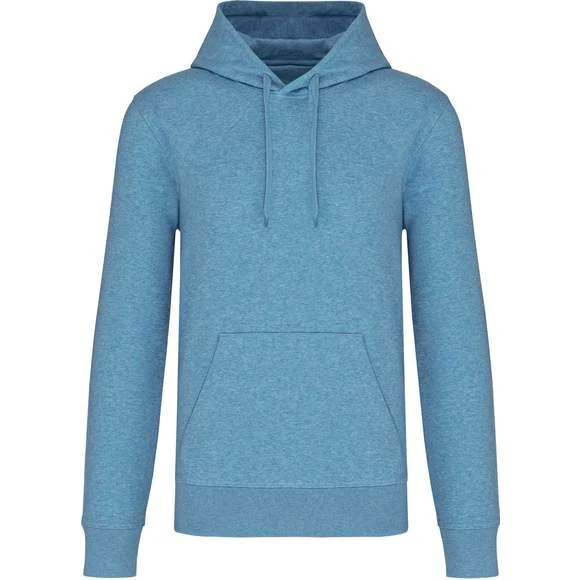 Sweat-shirt à capuche pour homme. Modèle écoresponsable. Molleton gratté 3 fils LSF (Low Shrinkage Fleece). Coton peigné. Lavage aux enzymes. Coupe droite. Bord-côte 1×1 montage tubulaire pour une meilleure finition au bas de manches et de vêtement. Poche kangourou. Capuche doublée 100% coton. Bande de propreté jersey ton sur ton et finition demi-lune intérieur col. Finition double aiguilles sur bas de manches, bas du vêtement et col. Pas d’étiquette de marque au col, uniquement une puce de taille pour faciliter la personnalisation. Composition :85% coton / 15% polyester. Conçu à partir de 85% de coton biologique et 15% de polyester recyclé. Le certificat GOTS (Global Organic Textile Standard) est délivré par Ecocert Greenlife. Grammage : 280g/m²