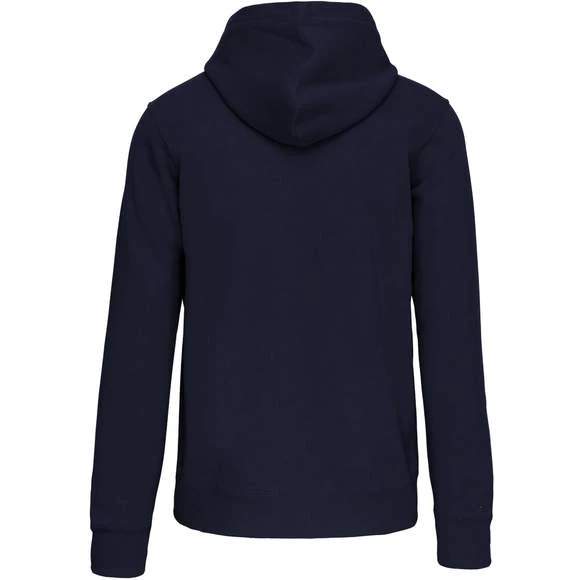 80% coton / 20% polyester « LSF » – Molleton gratté et pré-rétréci – Lavage siliconé – Bande de propreté contrastée à l’encolure – Intérieur capuche contrasté – Poches kangourou – Finition bord-côte bas de manche et bas de vêtement – Grammage : 360g/m²