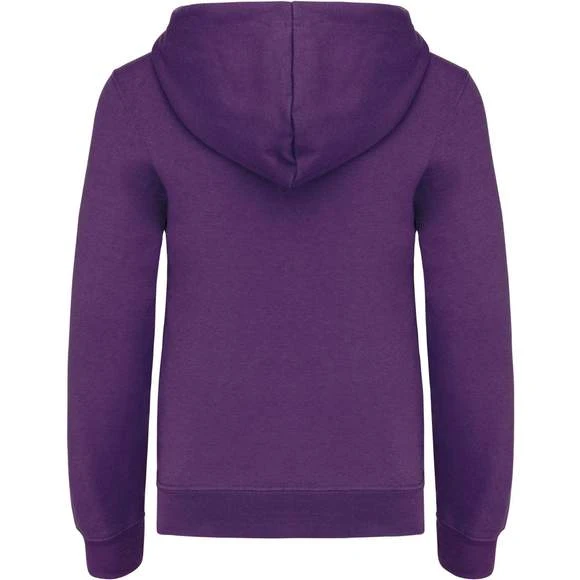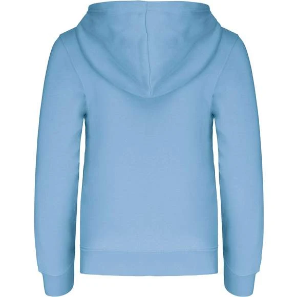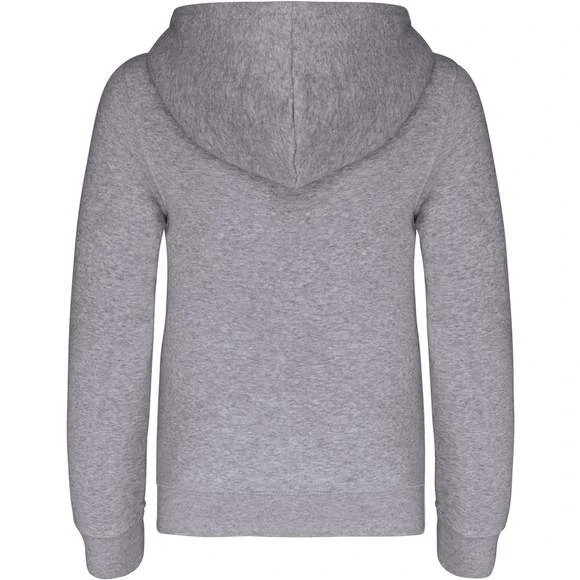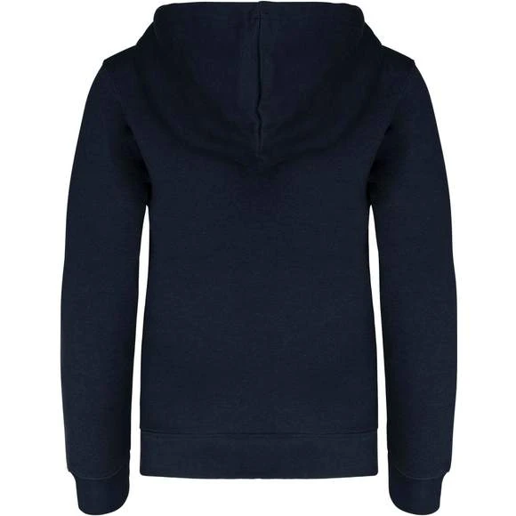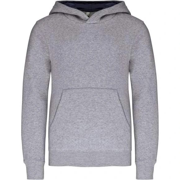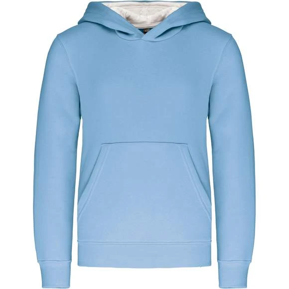 80% coton / 20% polyester. Molleton gratté. Poche kangourou avec ouverture discrète et attache à l’intérieur du col pour passage écouteurs. Finition bord-côte aux poignets et bas de vêtement. Capuche doublée et contrastée. Grammage : 280g/m²