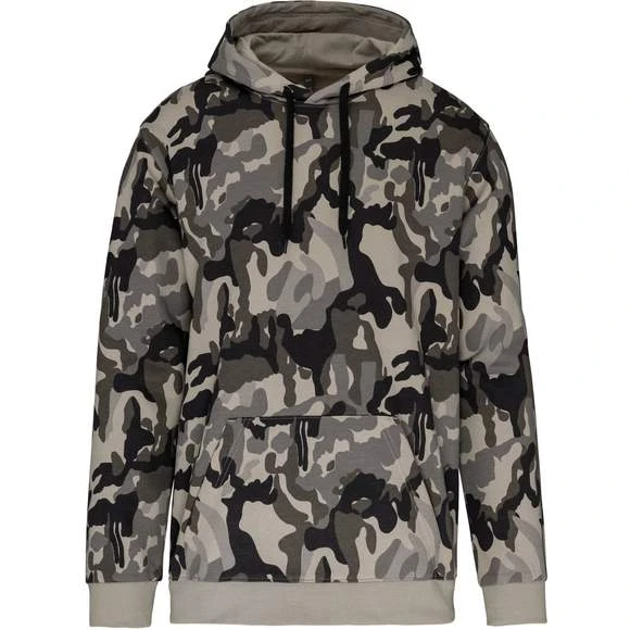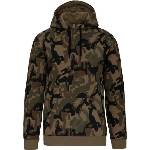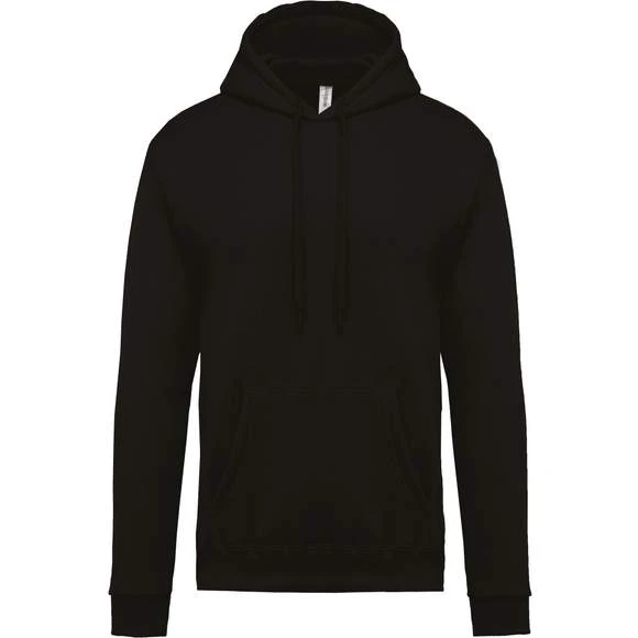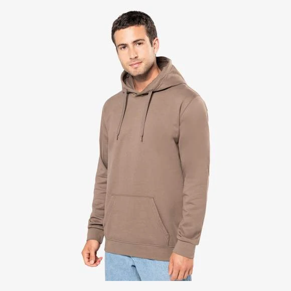 80% coton / 20% polyester. Molleton gratté. Manches montées. Coupe tubulaire. Capuche doublée avec cordon de serrage ton sur ton. Poches Kangourou. Finition bord-côte bas de manches et de vêtement. Grammage : 280g/m²