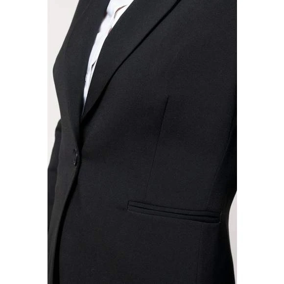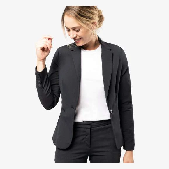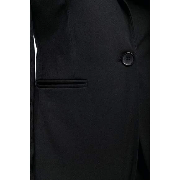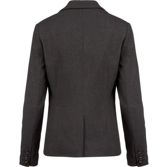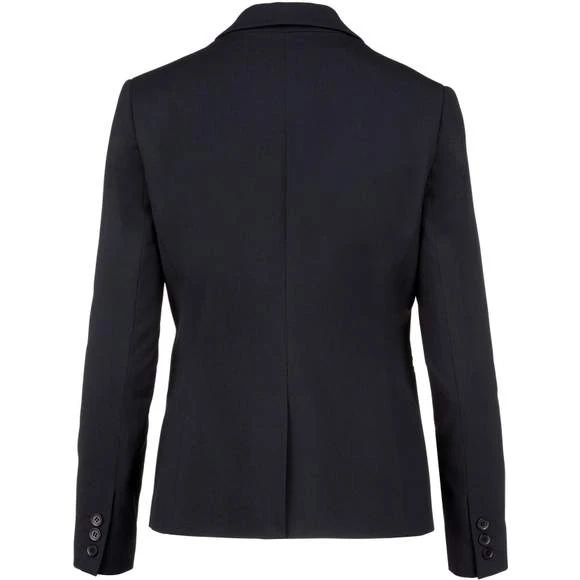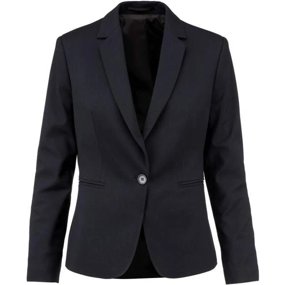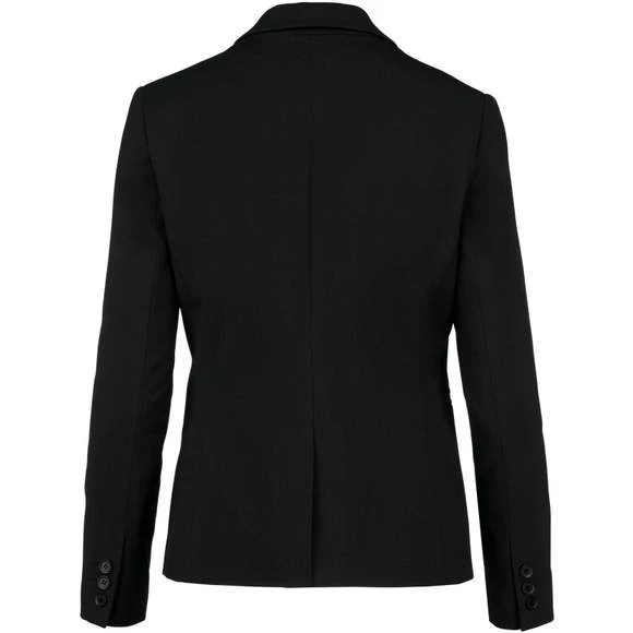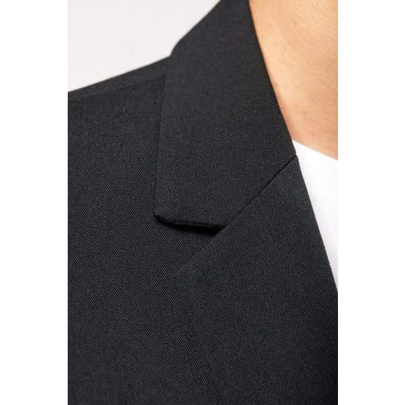 64% polyester / 34% viscose / 2% élasthanne. Doublure 100% polyester taffetas. Veste 1 bouton. 2 poches passepoilées devant. 2 poches intérieures boutonnées. Bas de manche avec 3 boutons. 1 fente d’aisance au dos. Grammage : 220g/m²