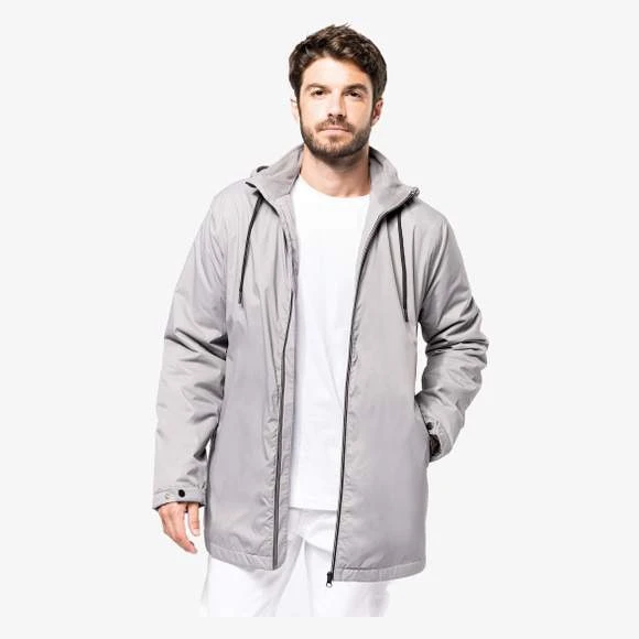 Veste à capuche avec doublure en micropolaire unisexe. Coupe droite. Doublure corps, col et capuche en micropolaire ton sur ton. Manches ouatinées et doublées en polyester. Fermetures zippées noire avec chaînette argent en nylon. 2 poches avant zippées. 1 poche intérieure fermée avec bande auto-agrippante. Capuche en 3 parties, doublée avec cordon de serrage de couleur noire. Réglage bas de manches avec 2 boutons pression. Finition demi-lune encolure dos pour faciliter la personnalisation de marque à l’intérieur. Lien d’accrochage intérieur col. Zips invisible de personnalisation côté cœur et bas de vêtement. Etiquette de marque Tear Away. Composition : 100% polyamide 210T avec enduction acrylique. Doublure 100% polyester micropolaire. Grammage : 200g/m²