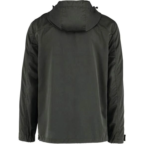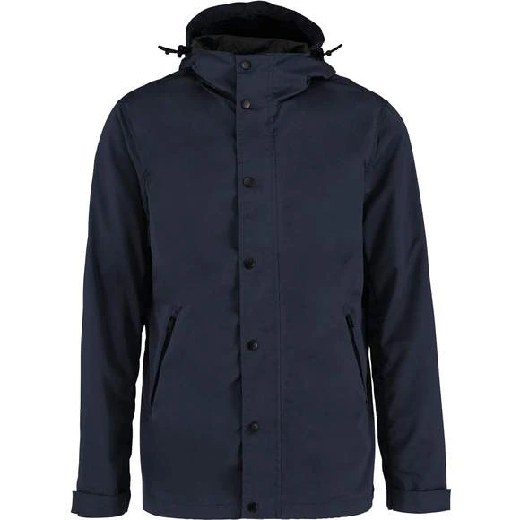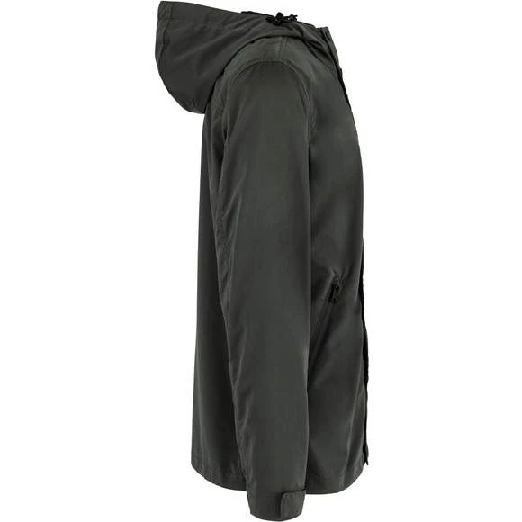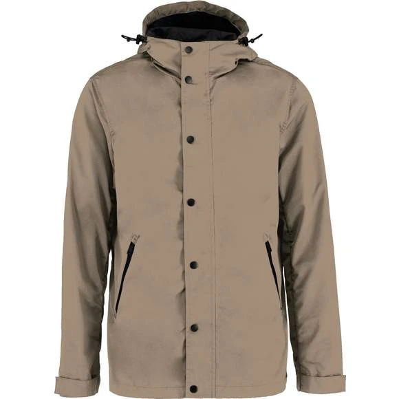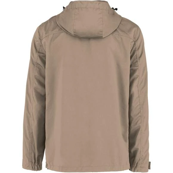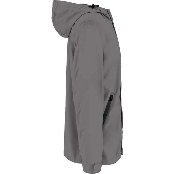Veste écoresponsable à capuche unisexe. Boutons pression electrostatic paint et métal. Tissu déperlant. Zips en plastique et puller en métal. Poches latérales côtés à zips retournés (waterproof). Capuche panneaux, doublée en polyamide ripstop quadrillé. Bande auto-agrippante aux bas de manches + demi-élastique. Doublure intérieure en ripstop volante au dos pour faciliter la personnalisation. Finition biais à l’emmanchure, côtés vêtement et intérieur de manches. Œillets d’aération dos sous les manches. Élastique bas de vêtement, cordon de serrage avec stopper sur les côtés. Patte de boutonnage avec boutons pressions sur le milieu devant. Composition : 87% polyester (35% recyclé), 13% polyamide. Grammage : 130g/m²