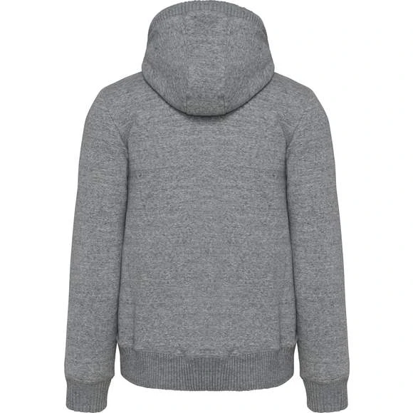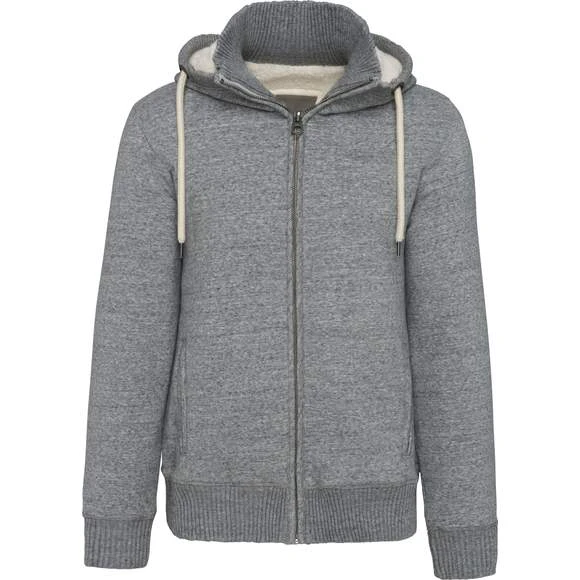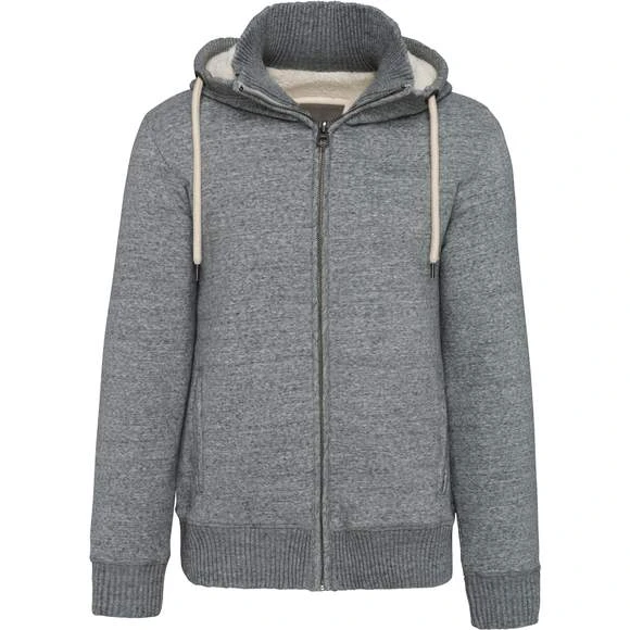 80% coton / 20% polyester. Entièrement doublé sherpa 100% polyester. 2 poches passepoilées devant. Fermeture à glissière métal. Bord-côte 4×4 au col, pourtour de capuche, bas de manches et bas de vêtement. Zip invisible côté cœur et couture côté gauche pour accès personnalisation. Ce produit a subi un traitement spécial et présente un aspect volontairement vieilli. Ce procédé de fabrication implique des variations de couleurs d’un produit à l’autre et rend chaque pièce unique. Pas d’étiquette de marque, uniquement une indication de taille pour faciliter la personnalisation.