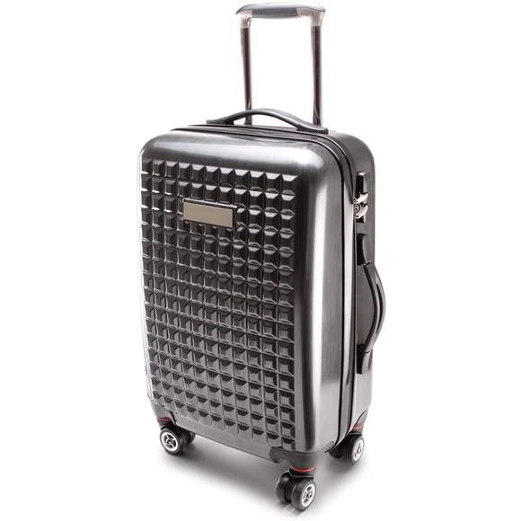 Valise trolley grand volume en polycarbonate très haute qualitĂ©, 4 roues doubles, design exclusif, divers rangements Ă l’interieur, fermeture sur le cotĂ© cadenacĂ©e. PossibilitĂ© de personnalisation sur plaque en mĂ©tal devant. Accessoires conformes Ă la norme Reach en vigueur et zips SBS. Dimensions : 75x50x30 cm