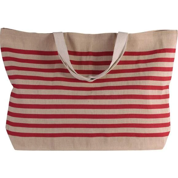 Grand sac fourre-tout en toile de jute et coton (juco), avec soufflet et anses de 55 cm de couleur contrastée. Dimensions : 72x15x48 cm. Grammage : 280g/m²