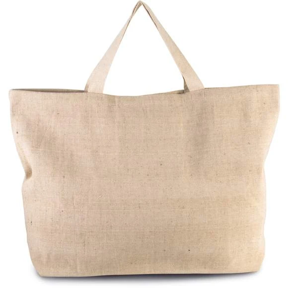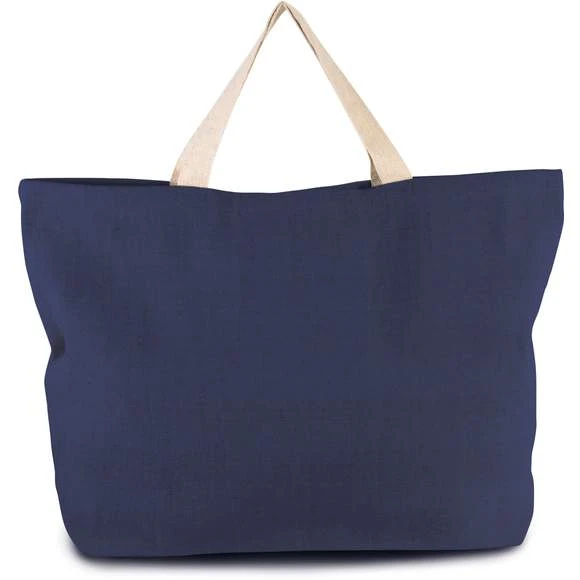 Grand sac fourre-tout en toile et coton avec soufflet et poignées contrastées de 55 cm. Le fil juco apporte au sac un tissage à aspect rustique. Dimensions : 72x15x48 cm. Grammage : 500g/m²