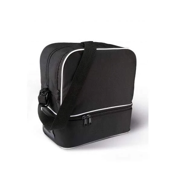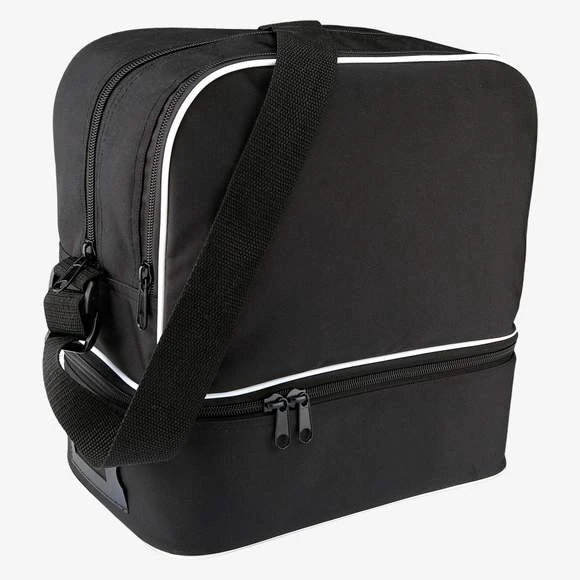 Grand sac de pétanque en polyester 900D enduction PVC norme Reach, 2 compartiments, compartiment du bas avec mousse conçu pour ranger 6 boules, sangle d’épaule ajustable. Accessoires conformes à la norme Reach en vigueur et zips SBS.