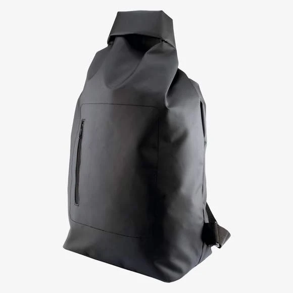 Sac marin en toile imperméable tarpaulin conforme norme Reach, fermeture haut du sac avec boucle, bretelles/sangles ajustables, poche devant avec zip imperméable. Accessoires conformes à la norme Reach en vigueur et zips SBS. Capacité : 42 litres. Dimensions : 30 cm x 20 cm x 56 cm.