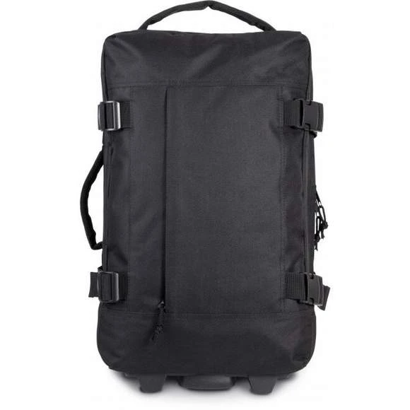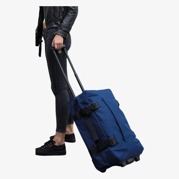Sac trolley cabine en polyester 600D avec grande poche zippée à l’avant pour faciliter la personnalisation. Deux compartiments internes avec sangles de maintien. Sangles de compression extérieures pour ajuster le volume. Base avec renforcement en relief et points d’arrêt sur les poignées. Dimensions : 30x22x52 cm.