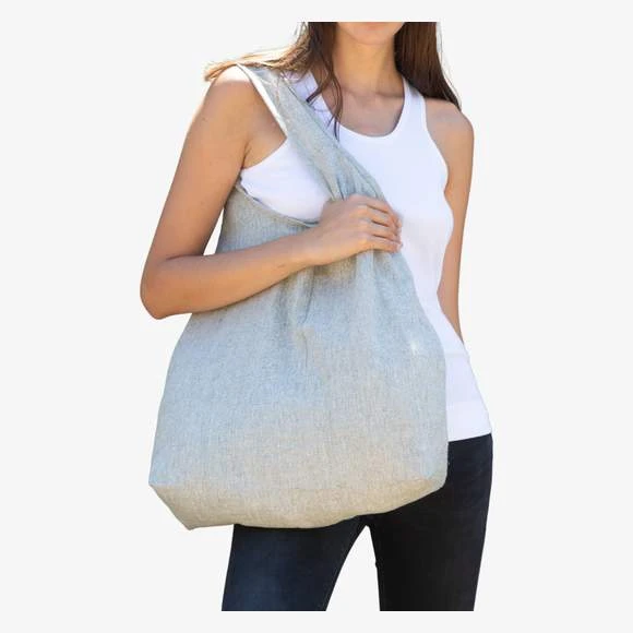 Sac shopping réalisé à partir de fil de matières recyclées. Le sac est cousu main avec des métiers à tisser traditionnels du Bangladesh, appelé « Tant ». Le tissage traditionnel donne un aspect artisanal particulier et unique à la toile. Cet article contribue à soutenir l’économie des familles vivant dans les villages reculés du Bangladesh, et surtout favorise le travail des femmes évitant ainsi la désertification de ces villages. La anse cousue tout le long du corps du sac est fabriquée à partir de la même toile que le sac. A l’intérieur du sac, se trouve une étiquette détaillant le projet et proposant aussi un espace de personnalisation pour apposer logos et/ou messages. Dimensions : 48 x 12 x 50 cm. Capacité : 29 litres. Composition : 70% coton / 25% polyester/ 5% autres fibres. Grammage : 200g/m²