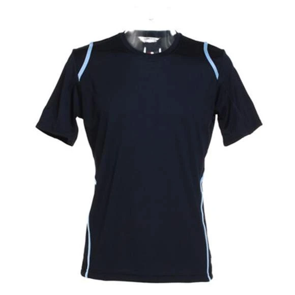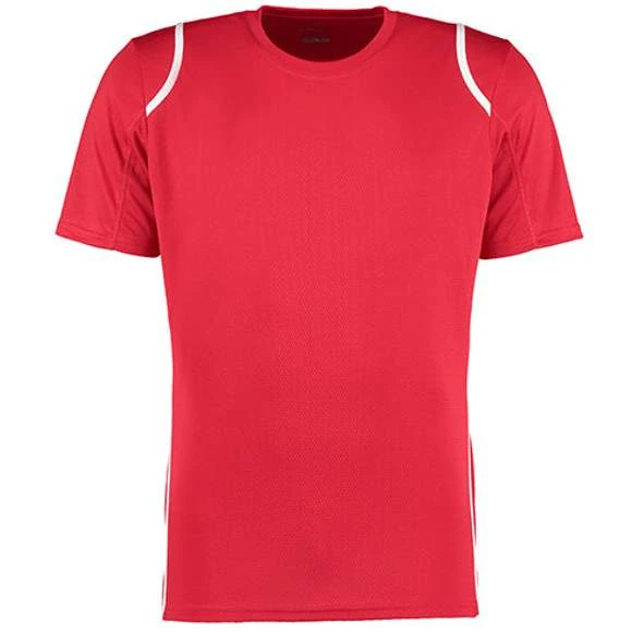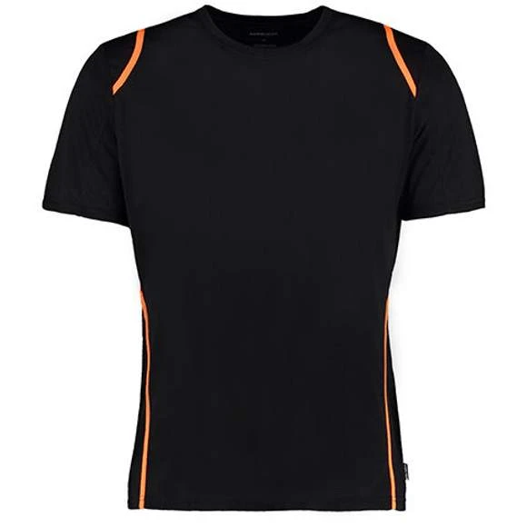 Matériau respirant | Col bordé | Coutures plates | Couleur contrastée de l’épaule au dos et jusqu’aux côtés de l’ourlet | Coupe droite à l’avant et arrondie à l’arrière | 100% polyester Grammage : 140g/m²