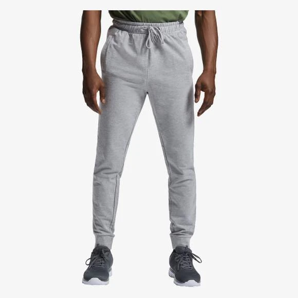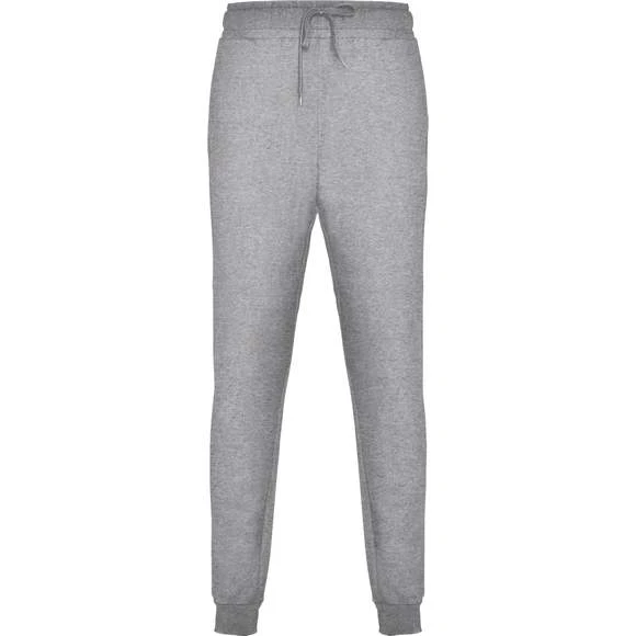 Pantalon de survêtement, ceinture large ajustable avec cordon, bas de poignets ajustable, coutures renforcées, poches latérales avec passepoil et poche arrière en coin et point vu. Tissu respirant. Étiquette détachable. Duo Concept. Composition : 60% coton / 40% polyester, Couleur gris chiné 58: 55% coton / 40% polyester / 5% viscose. Grammage : 280g/m²
