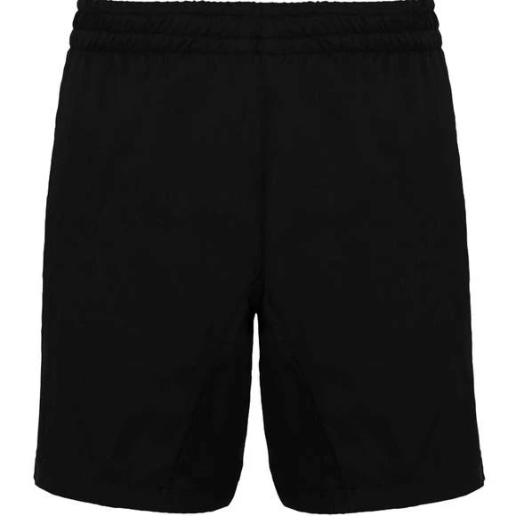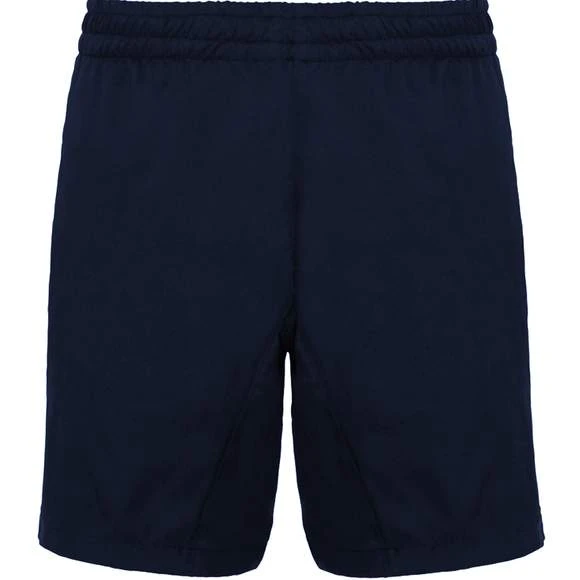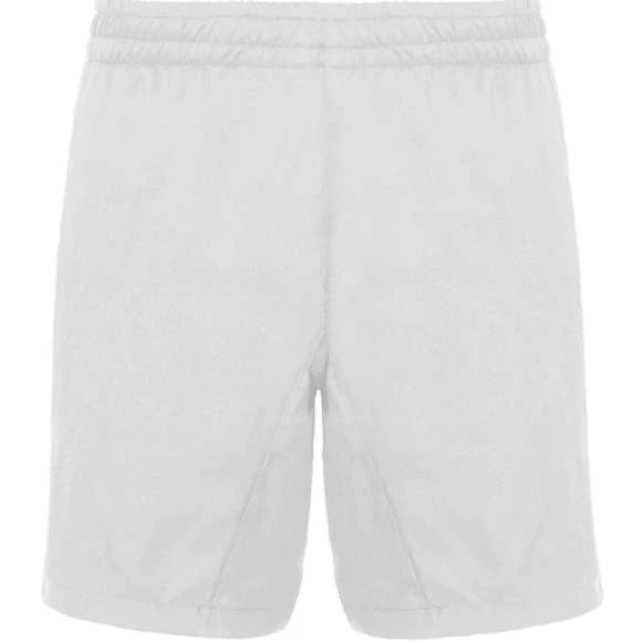Short sportif avec poches latérales. Ceinture élastique avec cordon réglable. Tissu léger et respirant avec intérieur frontal en maille microfibre. 100% Polyester, 120/130 gr/m². Double piqué.