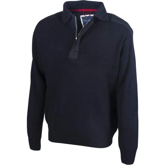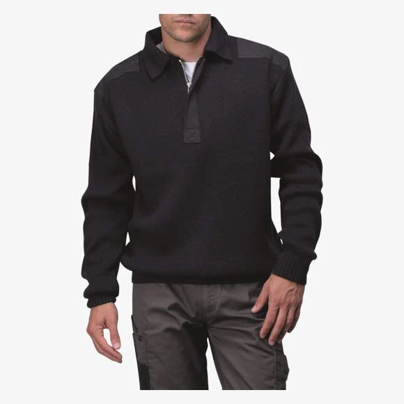 Pull over au look moderne. Idéal comme vêtement de travail. 100% Acrylic Double Twist antipilling. Renforts et double piqûre aux épaules et coudes. Bande de propreté contrastée. Zip frontal sur patte contrastée et renforcée. Label tissé. Tricot aux manches et dans le bas pour plus de sécurité. Col renforcé.