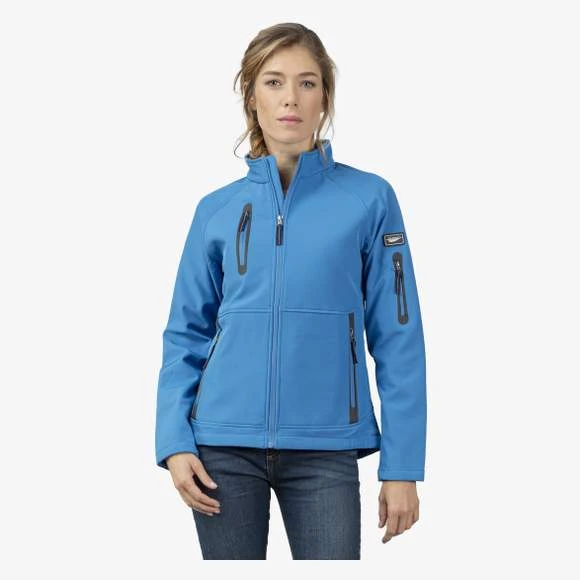Blouson femme Softshell ultra léger. 95% polyester/5% élasthanne. Tissu contrecollé 3 couches avec membrane respirante et imperméable. Intérieur en micropolaire. 4 poches extérieures zippées. Elastique bas avec stoppers.