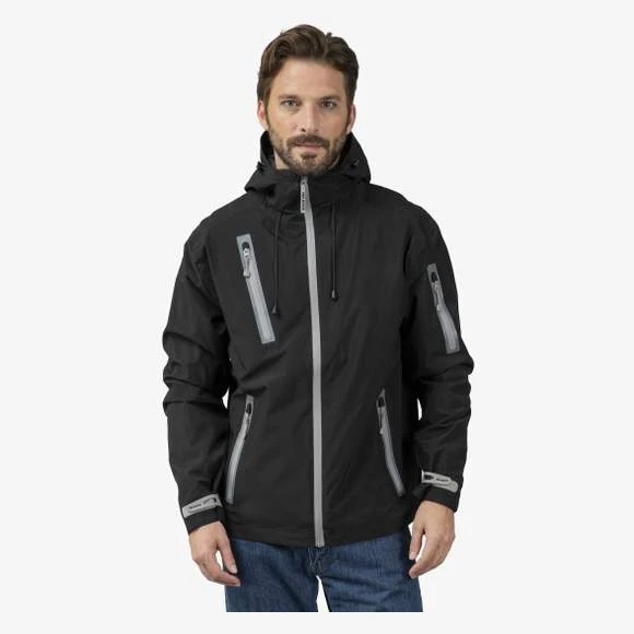 Veste Soft-Shell 2 couches. Tissu contrecollé 2 couches avec membrane respirante 2000 g/m² par 24 heures et imperméable à 5 000 mm. Zips contrastés et imperméables. Coutures thermo-soudées. Capuche réglable en hauteur et profondeur avec visière. Poignets ajustables et manchons élastiqués. Fermeture Éclair® avec tirette logotée Pen Duick. 2 poches zippées avec tirette. Poche zippée sur la manche. Poche intérieure. Zip SBS. Accès pour personnalisation.