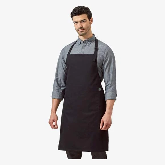 Tablier bavette avec pocheLongueur totale 100cm. Liens du même tissu 90cm. Bande d’encolure du même tissu avec boucle réglable. Lavage domestique 40°C 100% Fairtrade certified cotton twill